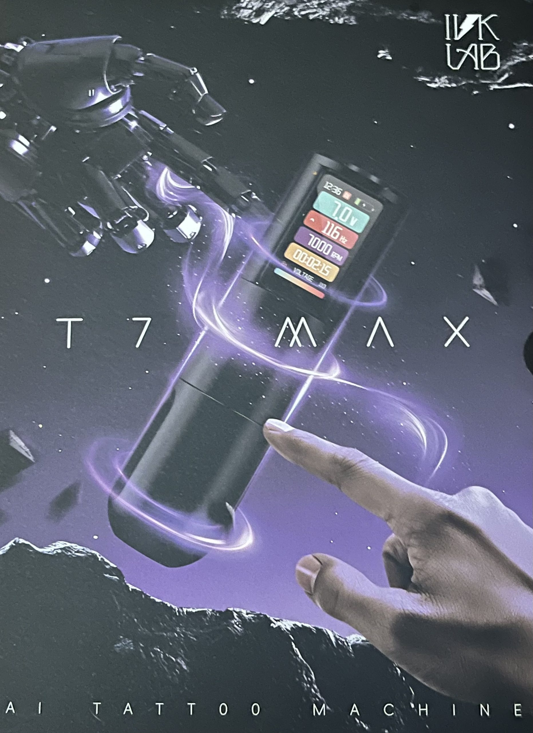 The Inklab T7 Max is a professional wireless rotary tattoo pen characterized by its AI voice control and versatile operating modes. IDesigned to handle multiple tattooing styles, from solid linework, packing black and color to soft grey shading, by allowing artists to adjust speed and voltage independently.